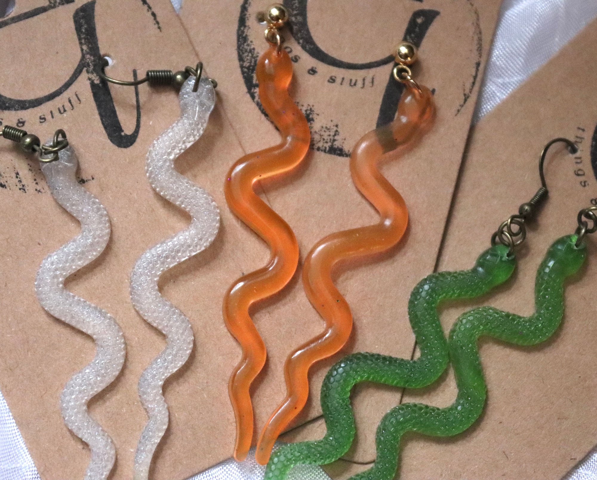 längliche schlangen ohrringe, strukturiert & unstrukturiert