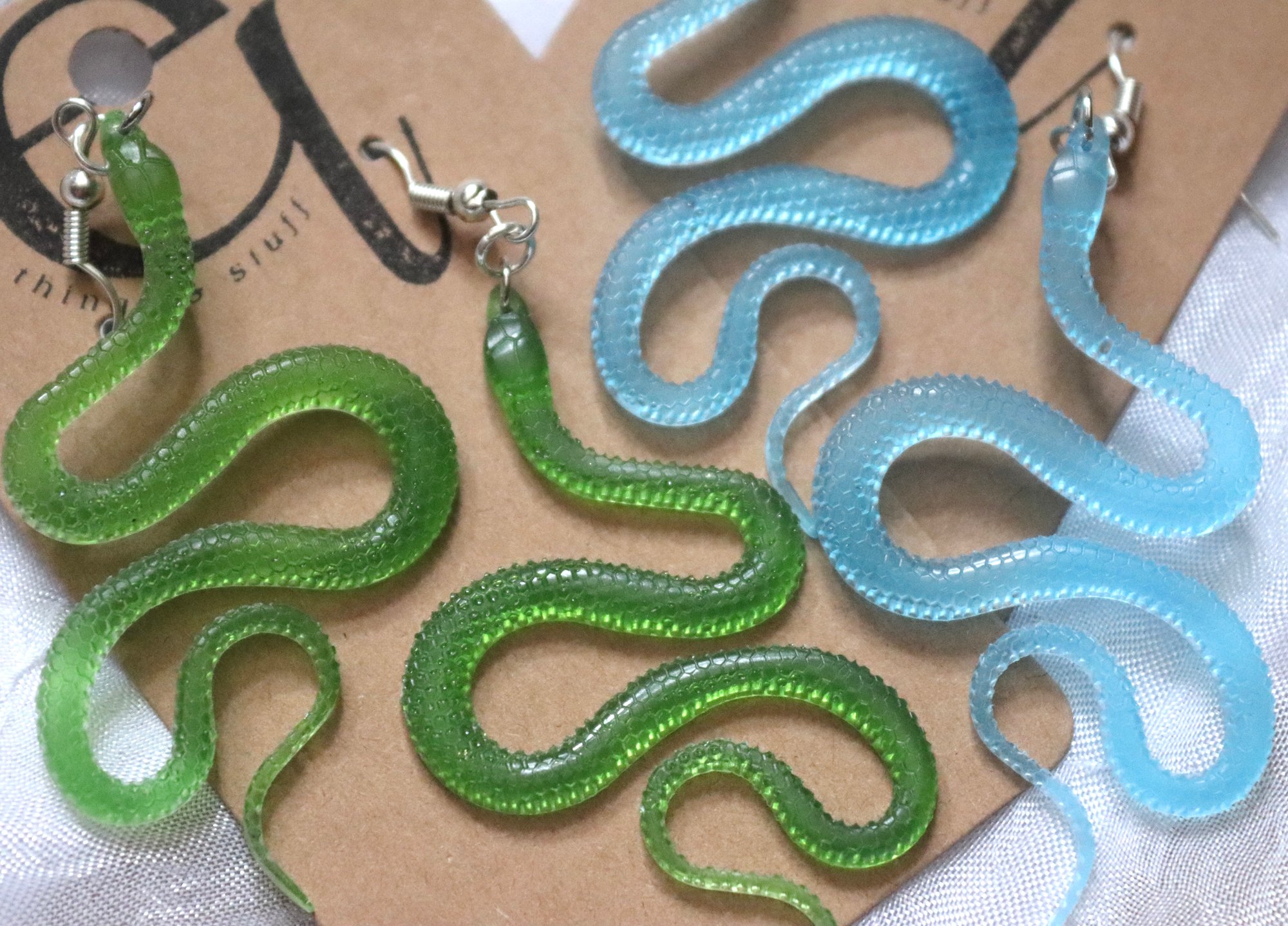 dünne schlangen ohrringe, strukturiert & unstrukturiert