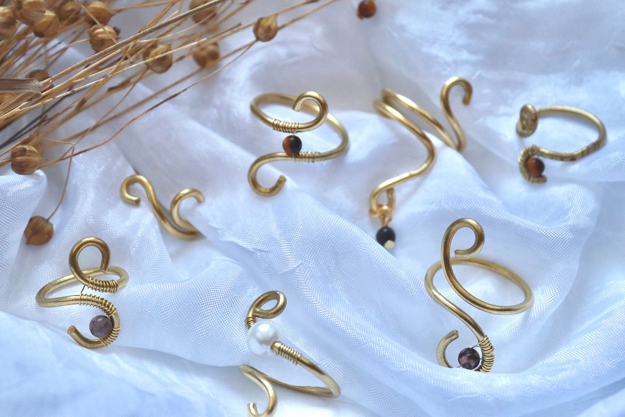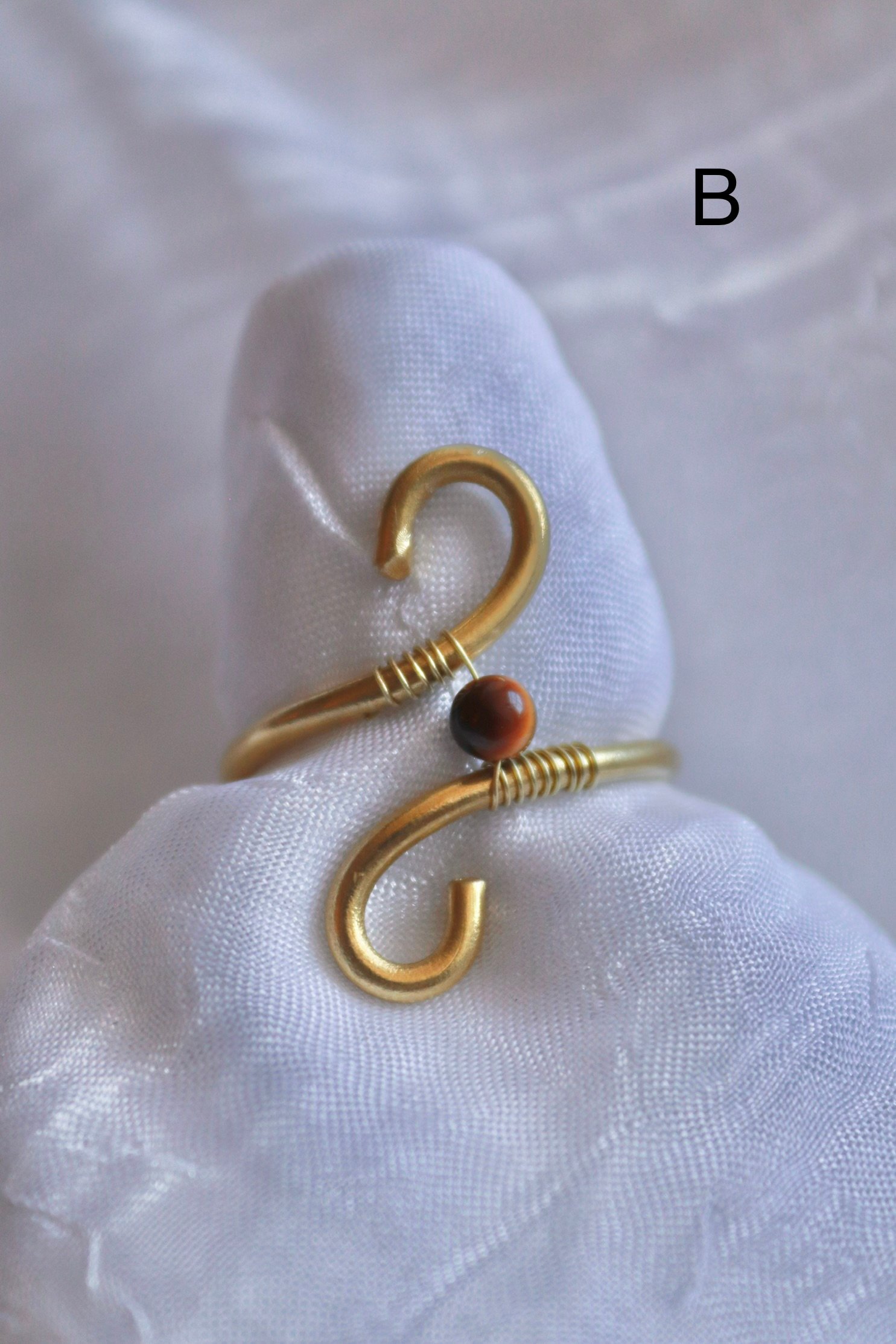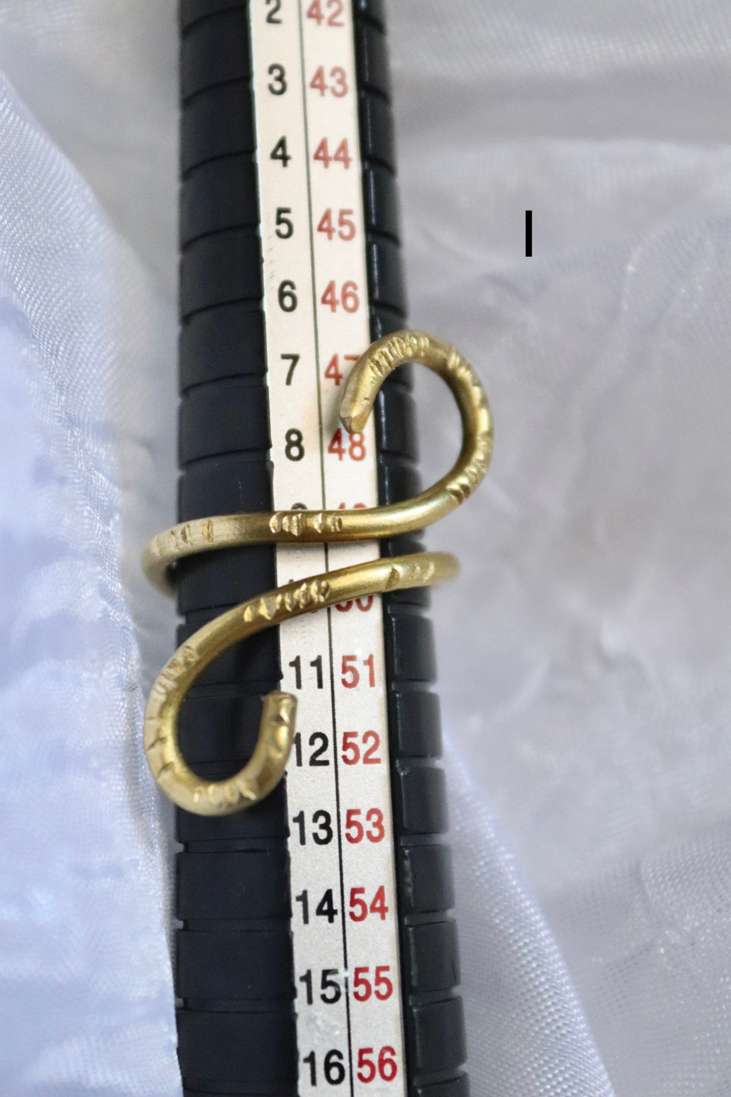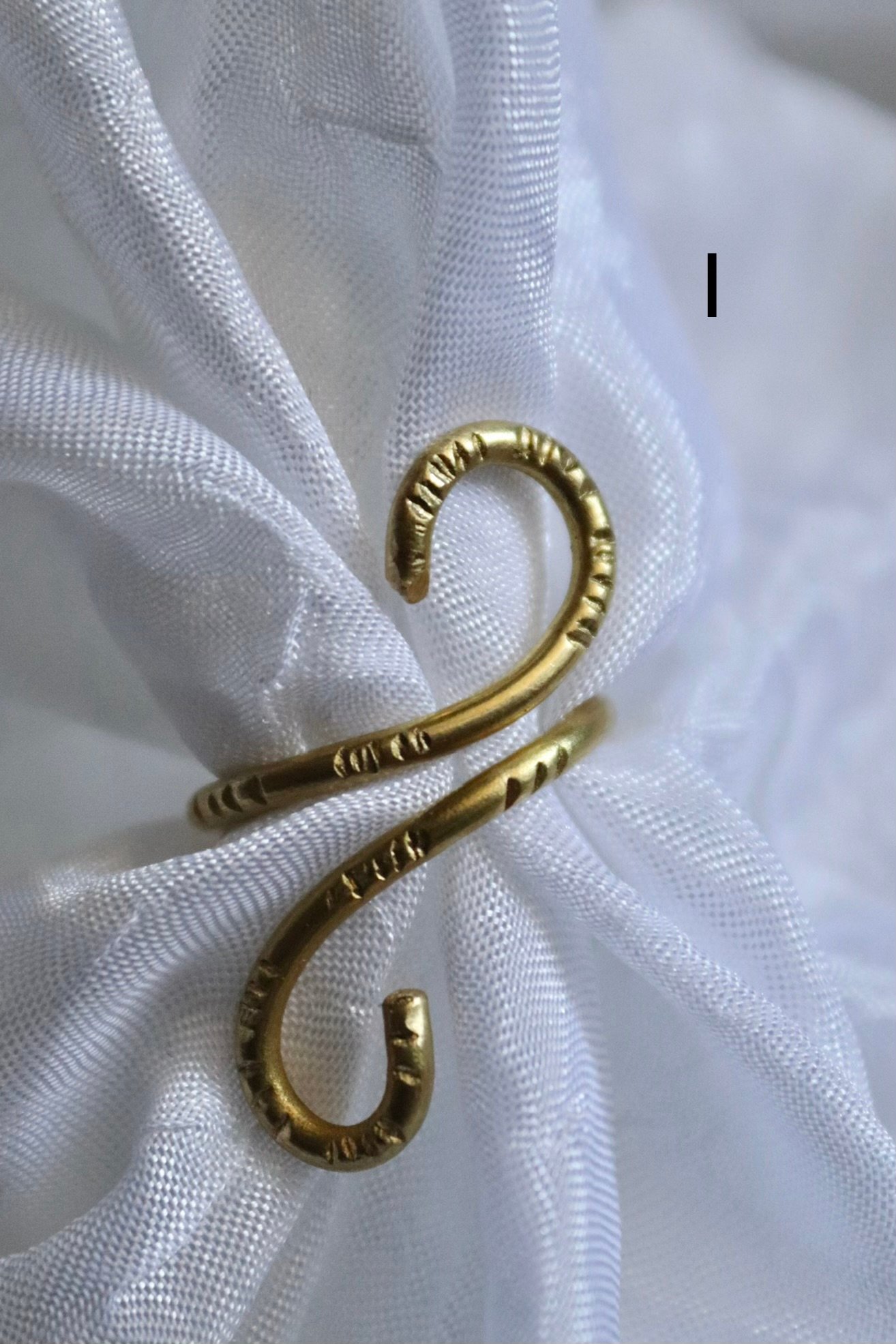 gebogen aus messingdraht. bei allergien oder hautirritationen nicht weiterverwenden, ggf. ärztlichen rat einholen. nicht geeignet für kinder unter 3 jahren (verschluckbare kleinteile). starken druck vermeiden: bruchgefahr. kontakt mit wasser, parfüm, chemikalien vermeiden, um lebensdauer des produktes zu verlängern. kann leicht abfärben. messing kann anlaufen, allerdings kann man den ring in diesem fall mit einer weichen drahtbürste mit wenig druck abbürsten und anschließend ggf. mit polierpaste nachpolieren, um ihn wieder glänzend zu bearbeiten.