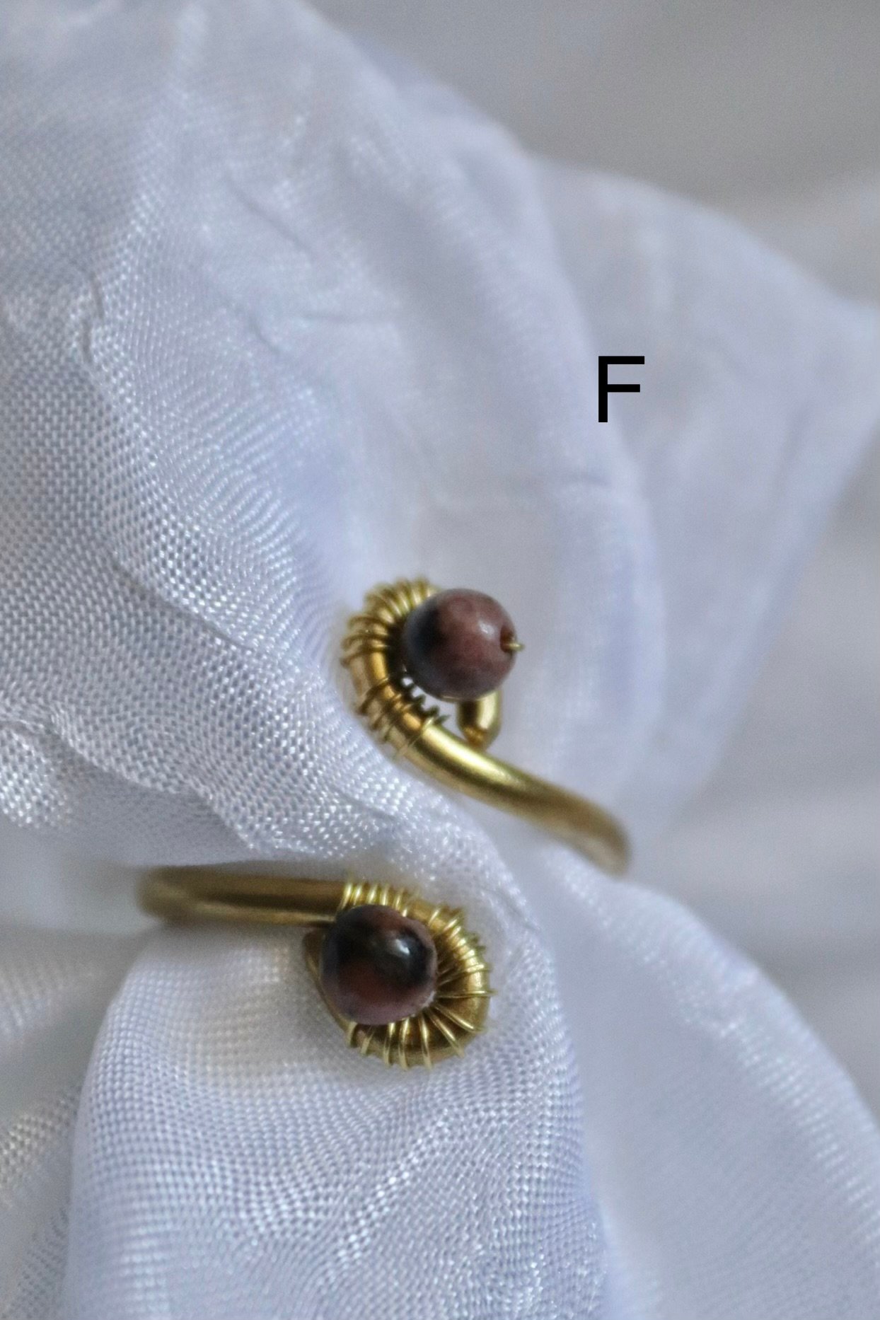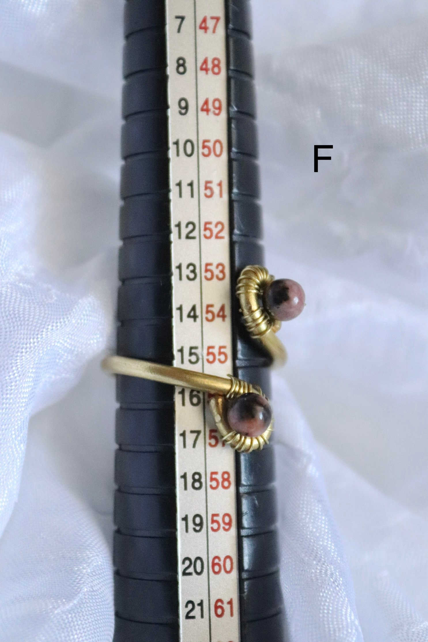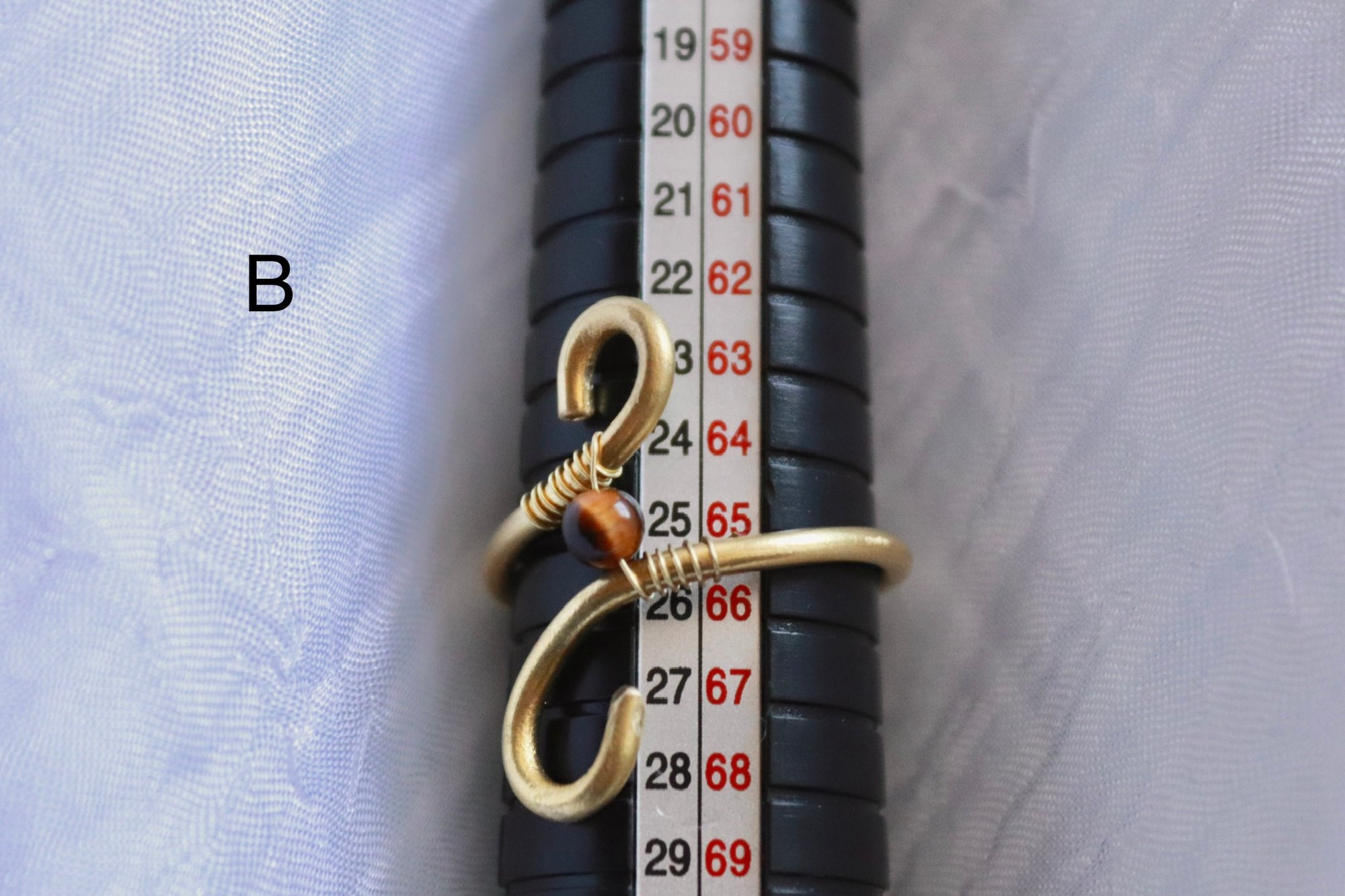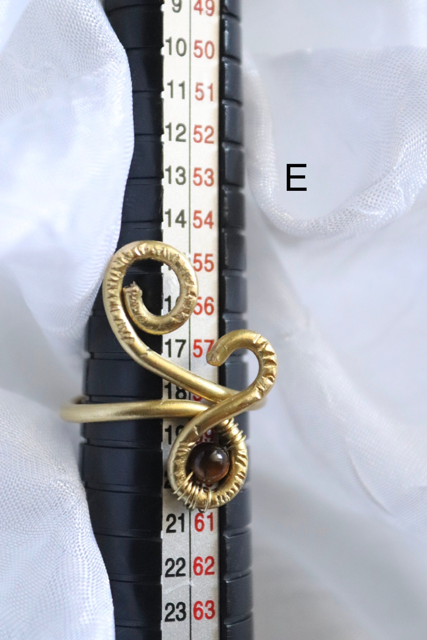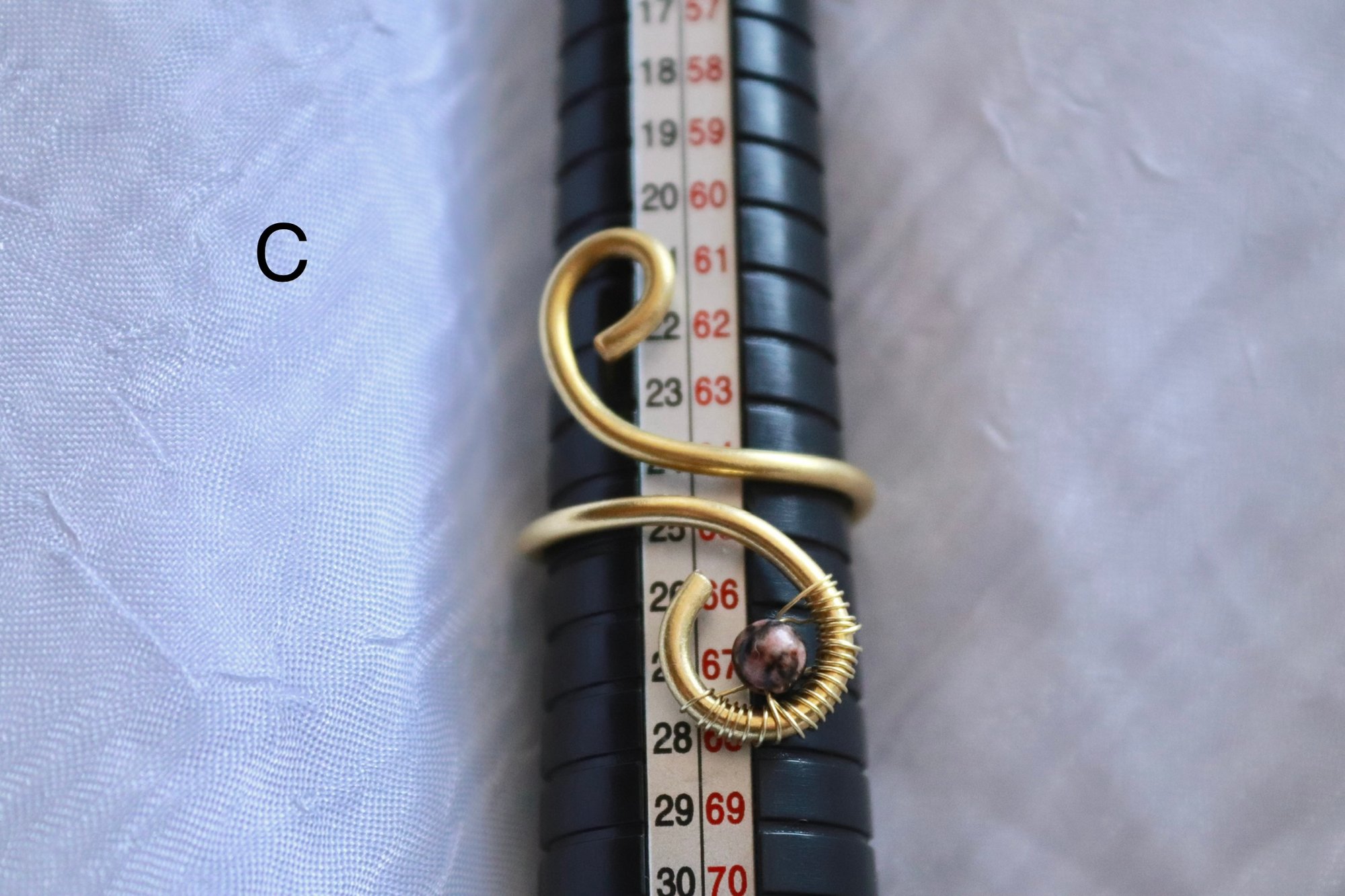 alle ringe sind unikate. farben und formen können leicht vom bild abweichen. größen der ringe können jeweils dem 2. bild entnommen werden, wobei die rechte, rote zahl den ungefähren ringumfang angibt- offene ringe können durch biegen leicht vergrößert oder verkleinert werden.